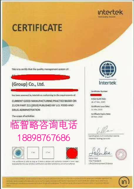 NSF/ANSI 173 GMP注冊(cè)
